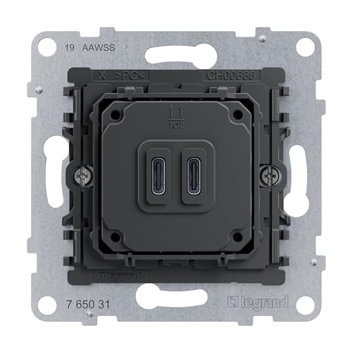 LEGRAND, Seano 765031 Prise de charge USB type C+C, double avec système Power Delivery, permet l'alimentation des appareils multimédias, 30 W