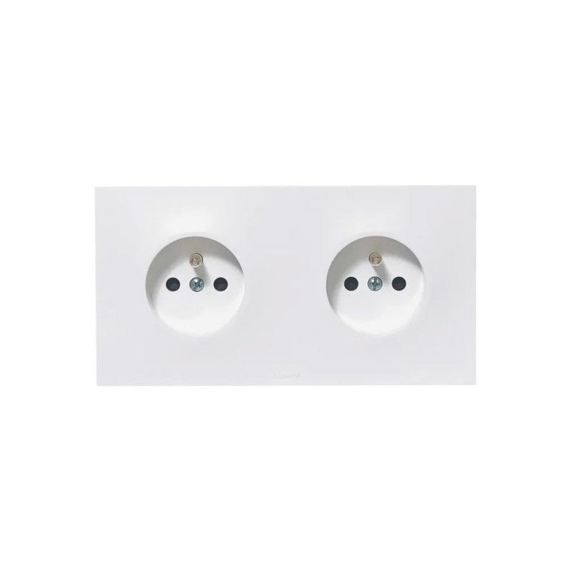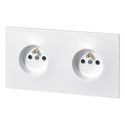 Double prise 2 pôles+terre 2 postes Legrand Neptune