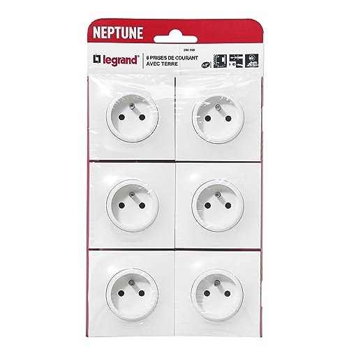 LEGRAND - Prise Electrique Murale avec Terre Neptune - Prise 2P+T Monobloc - Fixation à Griffes/Vis - Blanc - Lot de 6