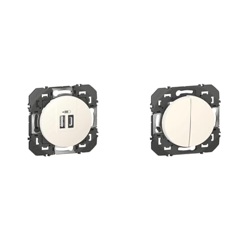 LEGRAND - Prise Double Chargeur USB-A + USB-C 3A/15W dooxie - Conforme Directive CEE & Interrupteur Mural Double ou Va-et-vient 10AX dooxie - Commande d'Éclairage (Sans Plaque)