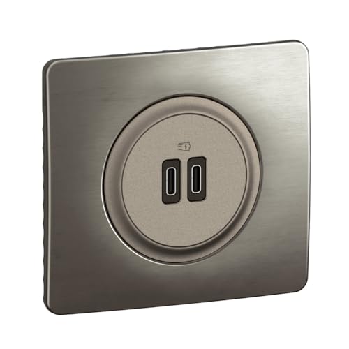 LEGRAND - Prise USB-C Double Céliane - 2 Ports USB-C 3A/20W - Recharge Tous Types d'Equipements Electroniques - Prêt à Installer - Titanium