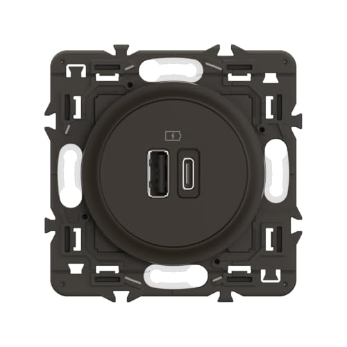 LEGRAND - Prise USB-C Double Céliane - 2 Ports USB-A et USB-C 3A/15W - Recharge Tous Types d'Equipements Electroniques - Prêt à Installer - Noir
