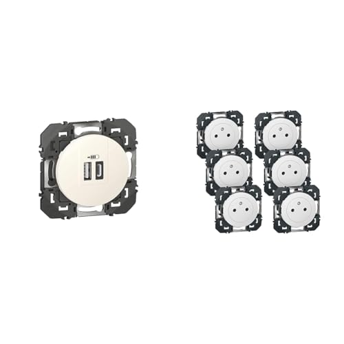 LEGRAND - Prise Double Chargeur USB-A + USB-C 3A/15W dooxie - Conforme Directive CEE & Prise Electrique Murale 16A avec Terre dooxie Surface - Prise 2P + T Affleurante avec Fond