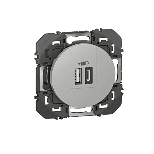 LEGRAND - Prise Double Chargeur USB-C dooxie - Conforme Directive CEE - Repiquage sur Prise 2P+T - Alu