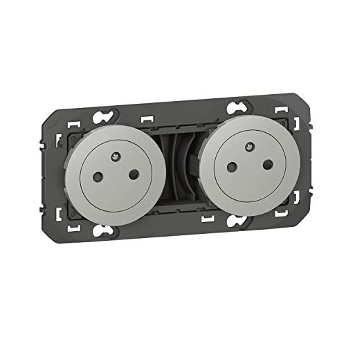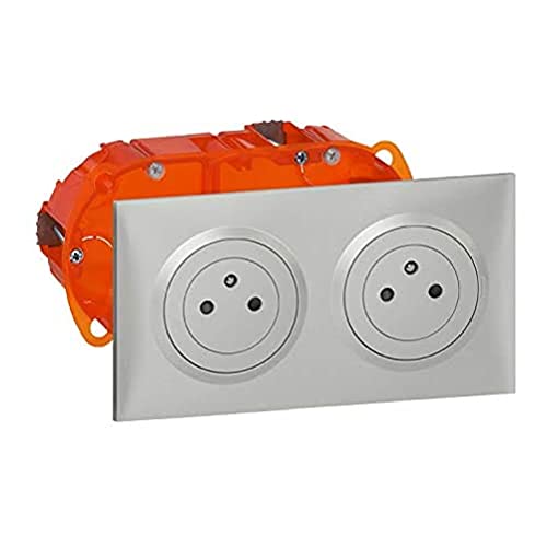 LEGRAND - Prise Double Murale 16A avec Terre dooxie Surface - Prise 2P + T Affleurante avec Fond Rétractable - Fabriqué En France - Alu