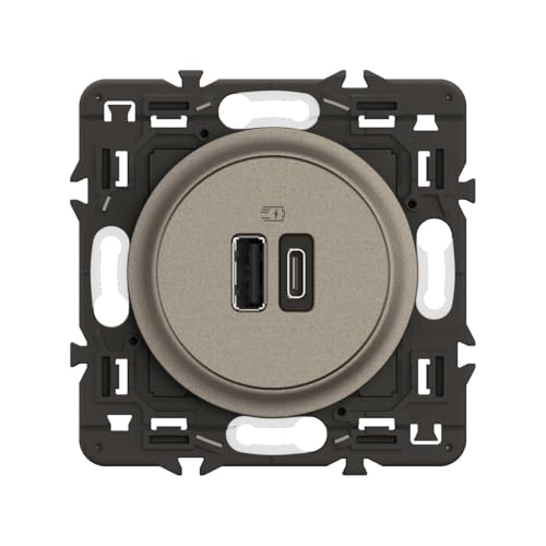 LEGRAND - Prise Double Céliane Avec USB-A et USB-C 3A/15W - Recharge Tous Types d'Équipements Électroniques - Prêt à Installer - Titanium