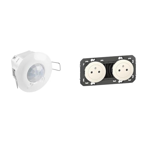 Legrand 048944 Détecteur de Mouvement Fixation Plafond, IR 360° sur 8m, Blanc & Prise Double Murale 16A avec Terre dooxie Surface - Prise 2P + T Affleurante