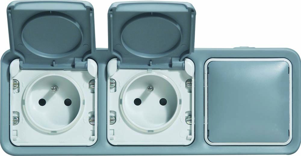 LEGRAND - Interrupteur Mural Etanche Simple ou Va-et-vient 10A Plexo - Commande d'Éclairage & SIEMENS - Étanche Double Prise 2P+T gris