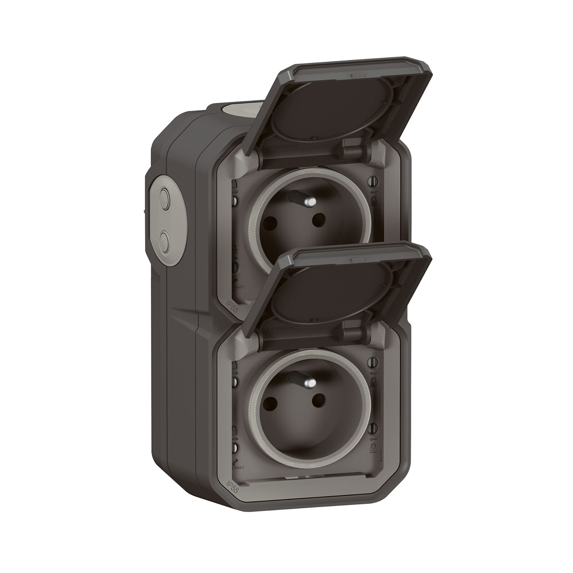 LEGRAND - Prise Etanche Double IP55 avec Terre Plexo - Prise 2P+T 16A Complète avec Volet - Pour Pose en Apparent - Montage Vertical - Fabriqué En France - Anthracite