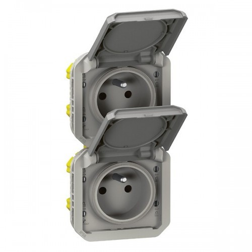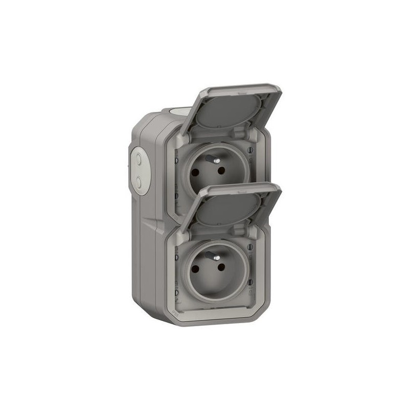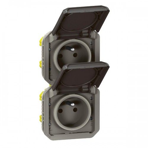 Double prise 2P+T composable étanche verticale - gris - Plexo LEGRAND
