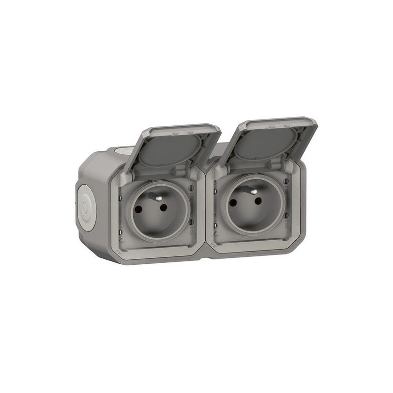 Double prise 2P+T composable étanche horizontale - gris - Plexo LEGRAND