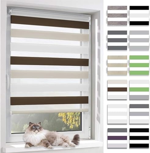 BelleMax Store Enrouleur Jour Nuit,Tissu Double,Rideau sans Perçage,Translucide Occultant Protection Vie privée,pour Fenêtre et Porte,(Largeur du Tissu 40 cm),Blanc-Beige-Marron,40l x 140L cm