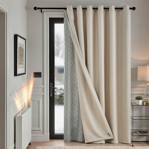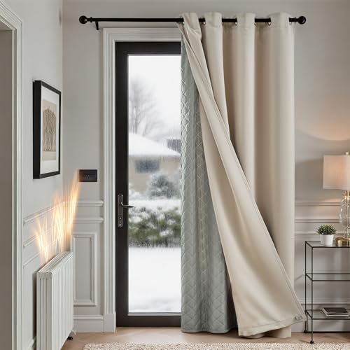 MIULEE Rideau Thermique Isolant Anti Froid et Chaleur avec Doublure, Rideau de Porte Isolant Thermique Lot de 1, Double Rideaux Occultant et Thermique Epais 132x260 CM(Largeur x Hauteur), Beige