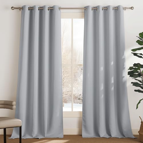 SOFJAGETQ Lot de 2 Rideaux occultants Gris Clair de 213,4 cm de Long, Gris, Double Couche, occultants, romantiques, décoration de fenêtre pour Chambre à Coucher et Salle à Manger, 132 x 213 cm