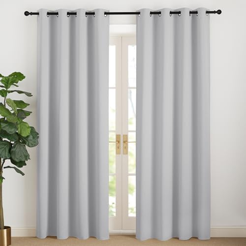 NICETOWN Rideaux Occultants Décoration de Fenêtre Double Draperies à Oeillets Isolation Lumineux Tissu Opaque pour Maison Chambre Salon, L 140 x H 240 cm, Gris Clair, Lot de 2