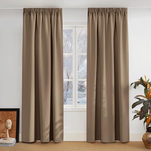 PONY DANCE Rideau Salon - Rideau Occultant Thermiques Occultants Draperies Double Rideaux Isolants Anti Froid Rideau Chambre Fille Garçons Enfant, Taupe Marron, L 140 x H 260 cm, 2 PCs