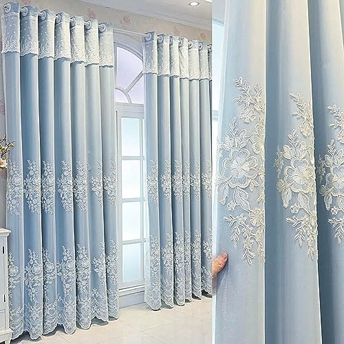 Amidoudou 1 Paire de Rideaux européens Double Couche brodés à Fleurs pour Salon, Chambre à Coucher (Bleu, 132 x 228 cm)