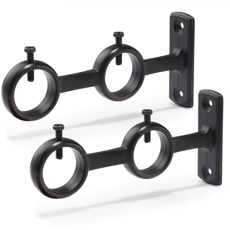 ANCLLO Lot de 2 supports de tringle à rideaux double pour salon, chambre à coucher, tringles à rideaux (noir)