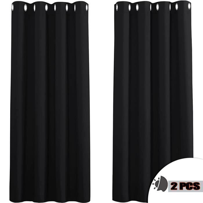 RideauRideau Occultant Oeillets Couleur Unie Design ModerneDouble Rideaux pour Salon et Chambre-140*160cm Noir 2 Pièces