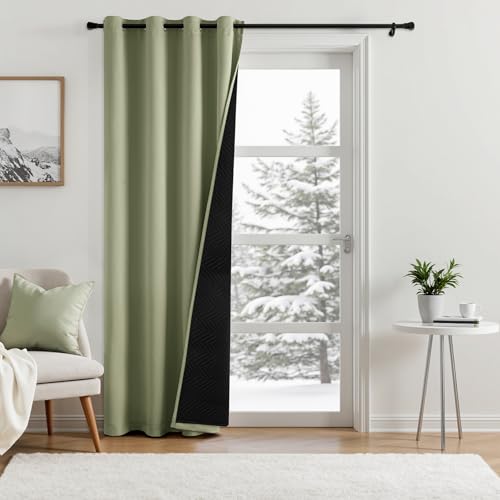 MIULEE Rideau Thermique Isolant Anti Froid et Chaleur avec Doublure, Rideau de Porte Isolant Thermique Lot de 1, Double Rideaux Occultant et Thermique Epais 140x200 CM(Largeur x Hauteur), Vert Sauge