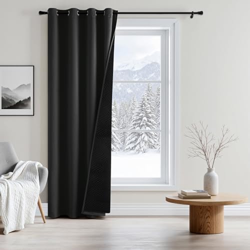 MIULEE Rideau Thermique Isolant Anti Froid et Chaleur avec Doublure, Rideau de Porte Isolant Thermique Lot de 1, Double Rideaux Occultant et Thermique Epais 140x200 CM(Largeur x Hauteur), Noir