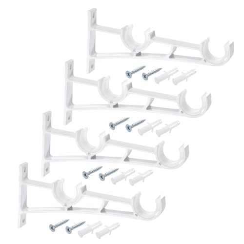 QUARKZMAN Support de Double Tringle à Rideau 4 Pcs - Supports de Tringle à Rideau en Alliage d'Aluminium Crochet de Tringle à Rideau Adaptés aux Pôles de Rideau de 0,8 à 1 Pouce (Blanc)