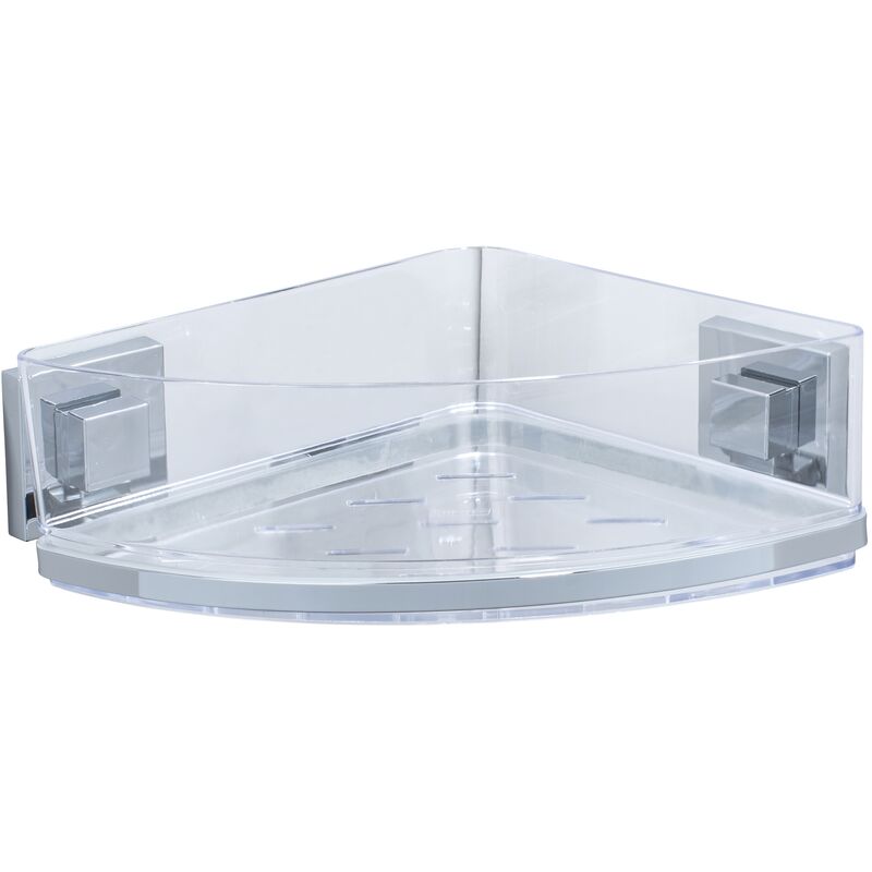 Etagère d'angle douche Quadro, étagère angle salle de bain fixation sans perçage Vacuum-Loc® repositionnable sans résidus, Acier Inox - Plastique,