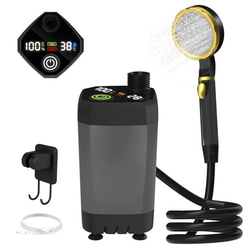 Aomiun Douche de Camping, Camping Douche Portable Pompe de Douche de Camping Kit de Douche d'extérieur pour Camping-Car Douche de Camp Kit de Douche Réglable à Affichage Numérique Intelligent