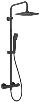 Colonne de douche thermostatique complète tête carrée, noir mat, Edouard Rousseau