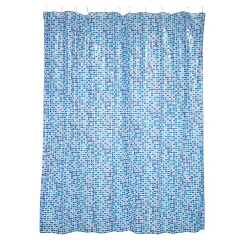 MSV, Rideau de Douche en PVC Imperméable, Design Élégant, Idéal pour Salle de Bain, Facile à Nettoyer, Dimensions 180 x 200 cm, Couleur Bleu Concept, Accessoire de Salle de Bain