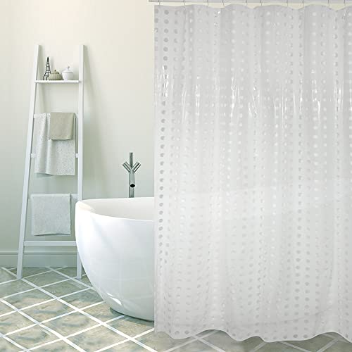 MSV, Rideau de Douche, en PVC, Revêtement antibactérien, 100% Vinyle, Design Moderne, Anneaux Inclus, Revêtement antibactérien et Hydrofuge, Lavable à 40°c, Blanc à Pois, 180x200 cm