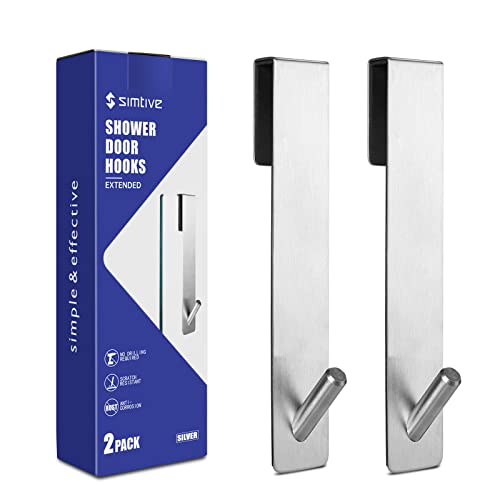 Simtive Lot de 2 crochets de porte étendus (17,8 cm) pour porte de douche en verre sans cadre, crochets porte-serviettes, argent