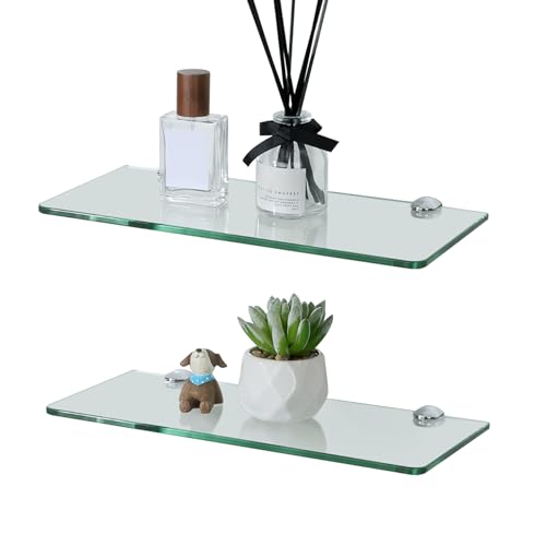 SAYAYO Étagère Murale en Verre Tablette Salle de Bain, Étagère de Douche en Verre Transparent Trempé de 6mm Épaisseur et Chromé Poli Supports, 2 Pcs Longueur 30cm, EGBL1010R-M6-300-C-2PC