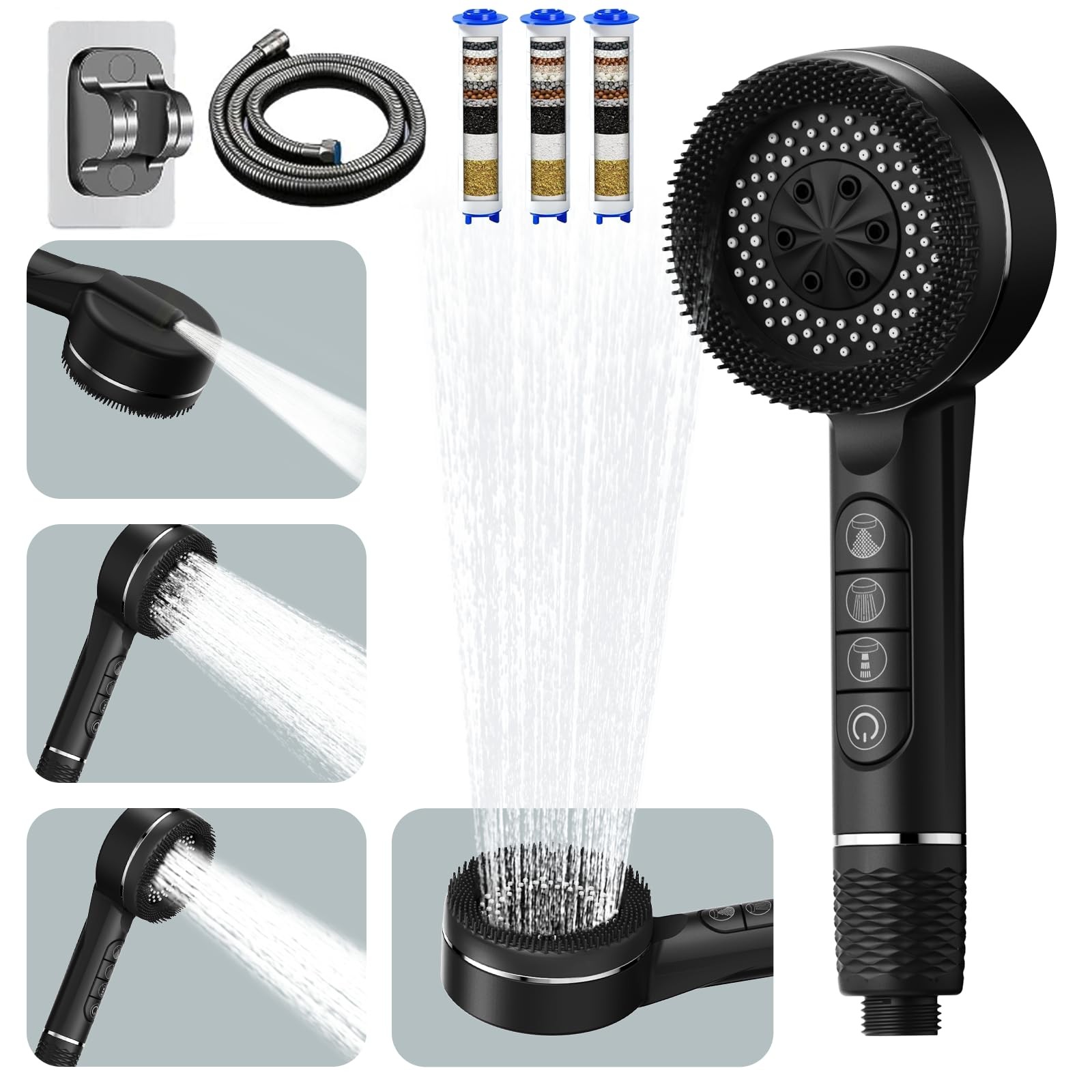 Blendura Pommeau de douche avec Filtre Economie Deau, Douchette Douche avec 5 Types de Jets, Pommeau Douche Anti Calcaire avec 3 Filtre, Gris