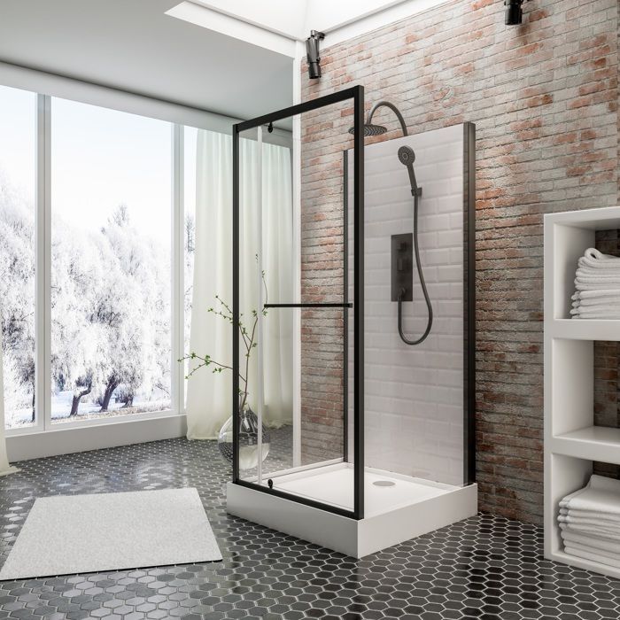 Schulte cabine de douche intégrale 80x80x190 cm réversible verre 5 mm cabine de douche complète porte pivotante noir mat
