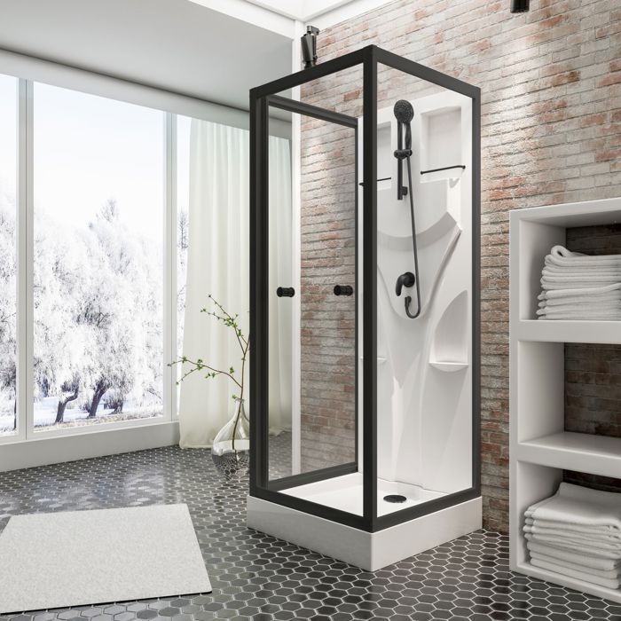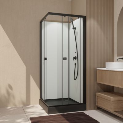 Cabine de douche intégrale carrée noir, L.80 x l.80 x H.200 cm, portes coulissantes, Julie Galedo