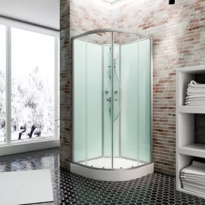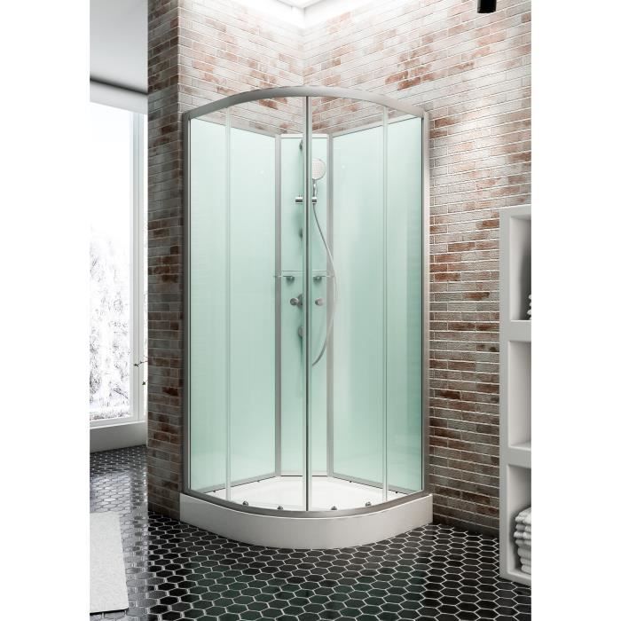 Cabine de douche intégrale quart de cercle, L.90 x l.90 x H.204 cm, portes coulissantes, profilé alu-argenté, Schulte Ibiza