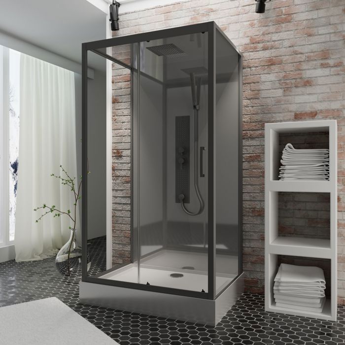 Cabine de douche intégrale rectangulaire hydromassante, L.120 x l.80 x H.224 cm, porte coulissante, profilé noir, Schulte Korsika