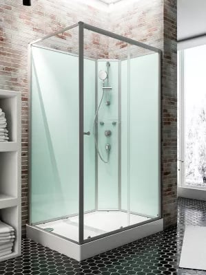 Cabine de douche intégrale rectangulaire, L.120 x l.80 x H.204 cm, porte coulissante ouverture droite, profilé alu-argenté, Schulte Ibiza