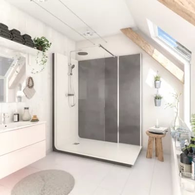 Cabine de douche à l’italienne l.90 x L.120 x H.218 cm – effet pierre charbon, receveur de plain-pied, Elmer Serenity