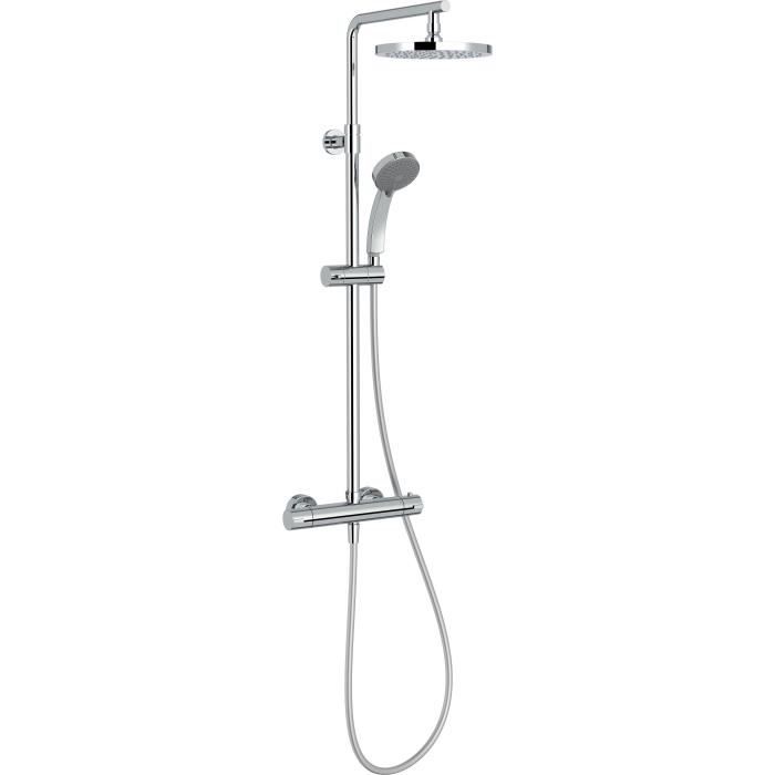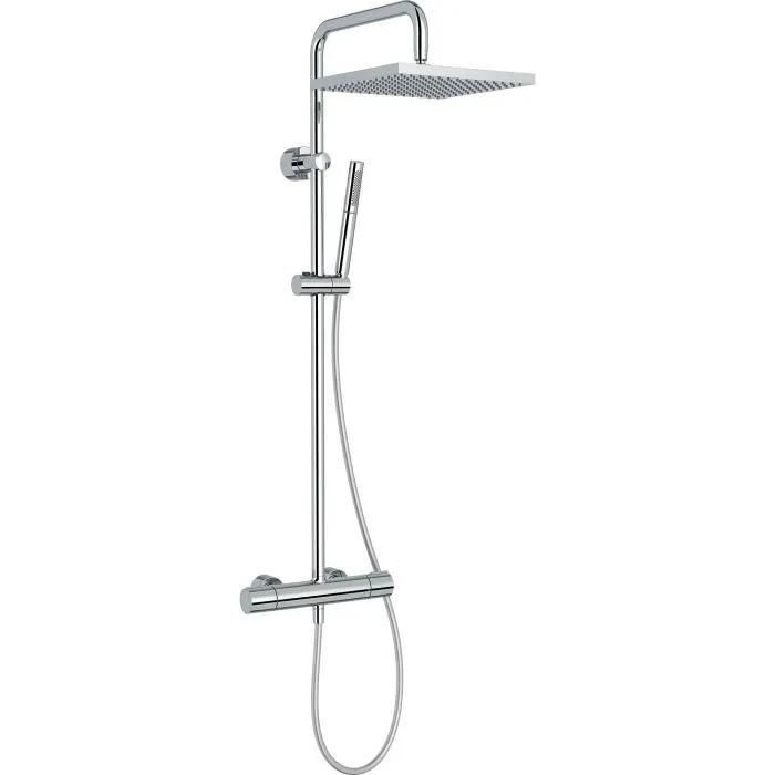 Colonne de douche thermostatique Jacob Delafon Brigitte - Pomme XXL 28cm - Douchette 2 jets - Chrome