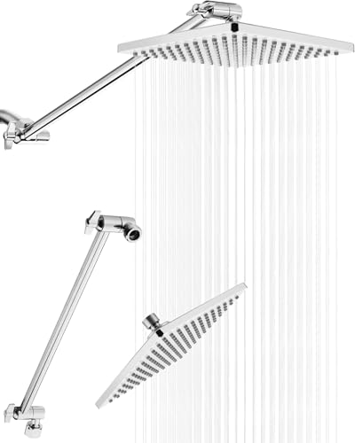 Singing Rain Pommeau de douche effet pluie 20,3 cm avec bras d'extension de 38,1 cm – Tête carrée fixe à grande surface – Bras réglable en hauteur et angle extra long – Expérience de douche ultime