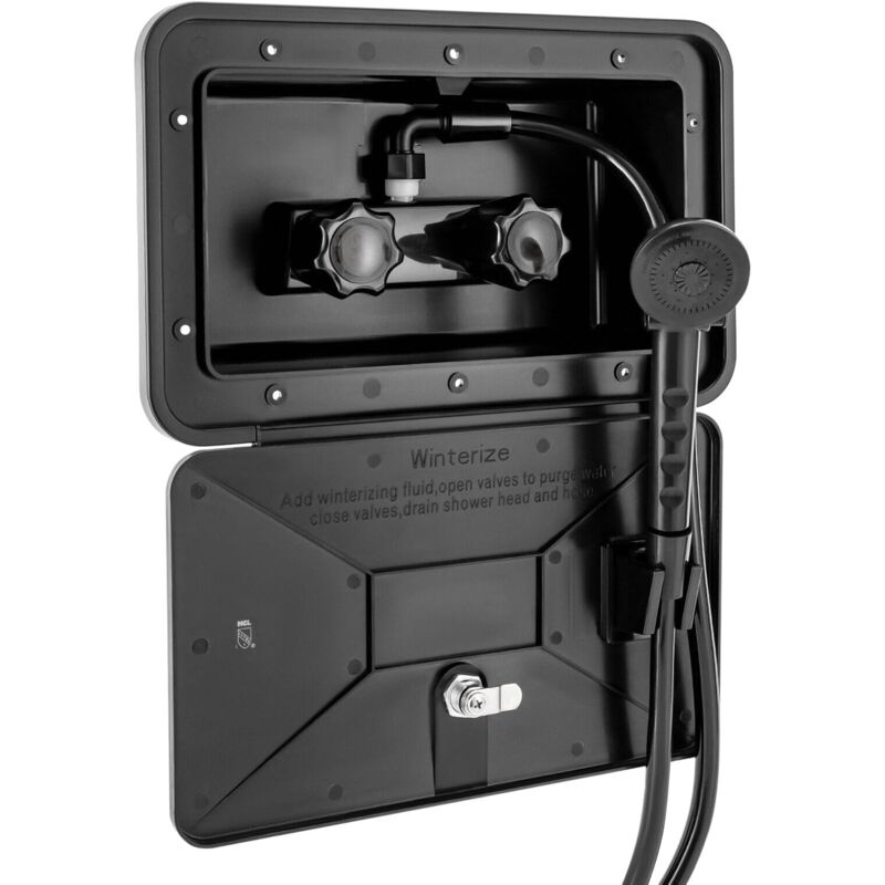 Qiilu Cabine de Douche Extérieure pour Camping-Car Kit de Boîte de Douche Extérieure en ABS Noir Boîte de Douche Extérieure pour Camping-Car avec 2 Clés Accessoires RV pour Camping-Car Caravane