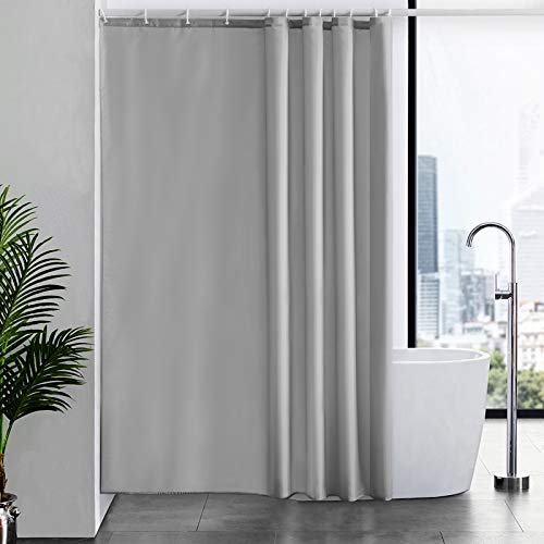 Furlinic Rideau de Douche Anti Moisissure Tissu en Polyester Imperméable Rideaux de Douche Textile Lavable pour Baignoire ou la Salle de Bain 12 Crochets de Rideau Douche Gris-Extra Long 180x210cm.