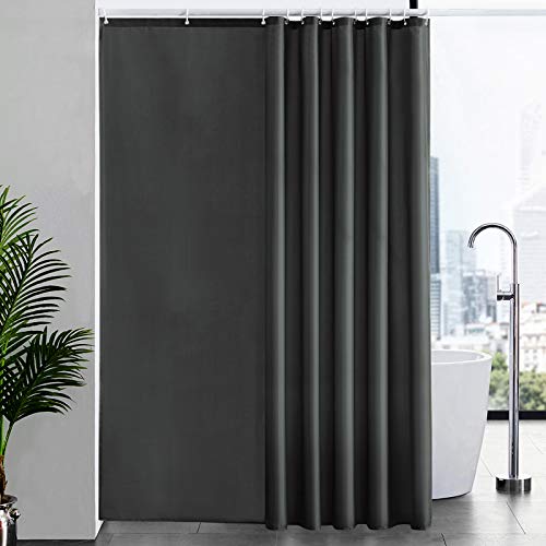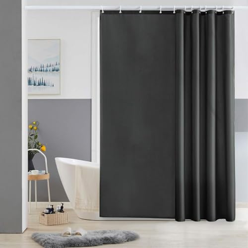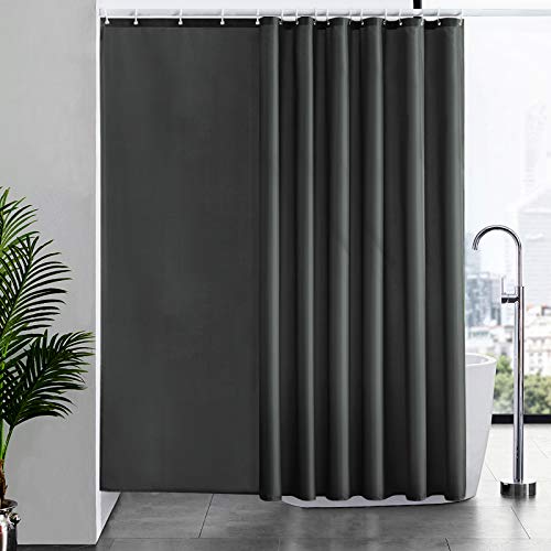 Rideau de Douche Anti Moisissure Tissu en Polyester Imperméable Rideaux de Douche Textile Lavable pour Baignoire ou la Salle de bain 12 Crochets de Rideau Douche Gris Foncé-Extra Long 200x240cm.