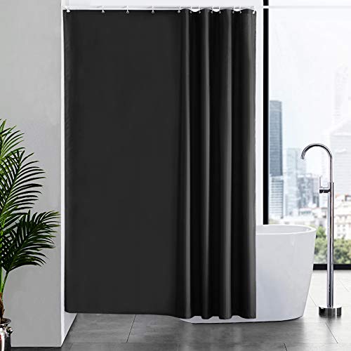 Furlinic Rideau de Douche Anti Moisissure Tissu en Polyester Imperméable Rideaux de Douche Textile Lavable pour Baignoire ou la Salle de Bain 12 Crochets de Rideau Douche Noir-180x200cm.