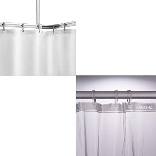 Ensemble combiné Sealskin Easy Roll tout-en-un pour suspendre un rideau de douche et un rideau transparent 180 x 200 cm, Blanc/Transparent