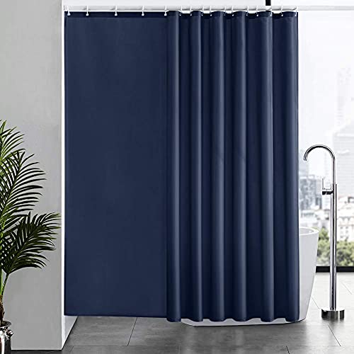 Furlinic Rideau de Douche Anti Moisissure Tissu en Polyester Imperméable Rideaux de Douche Textile Lavable pour Baignoire ou la Salle de Bain 16 Crochets de Rideau Douche Bleu Marine 240x180cm.