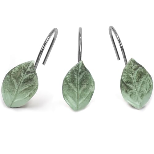 Lot de 12 Anneaux de Rideau de Douche décoratifs en métal résistant à la Rouille pour Salle de Bain, Anneaux de Douche coulissants pour Rideau de Douche et Doublure (Feuilles)