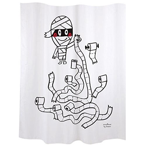 WENKO Rideau de douche Yak, rideau textile hygiénique, lavable, hydrofuge & d'entretien facile, avec 12 anneaux pour la fixation sur la barre de douche, 180 x 200 cm, blanc/noir